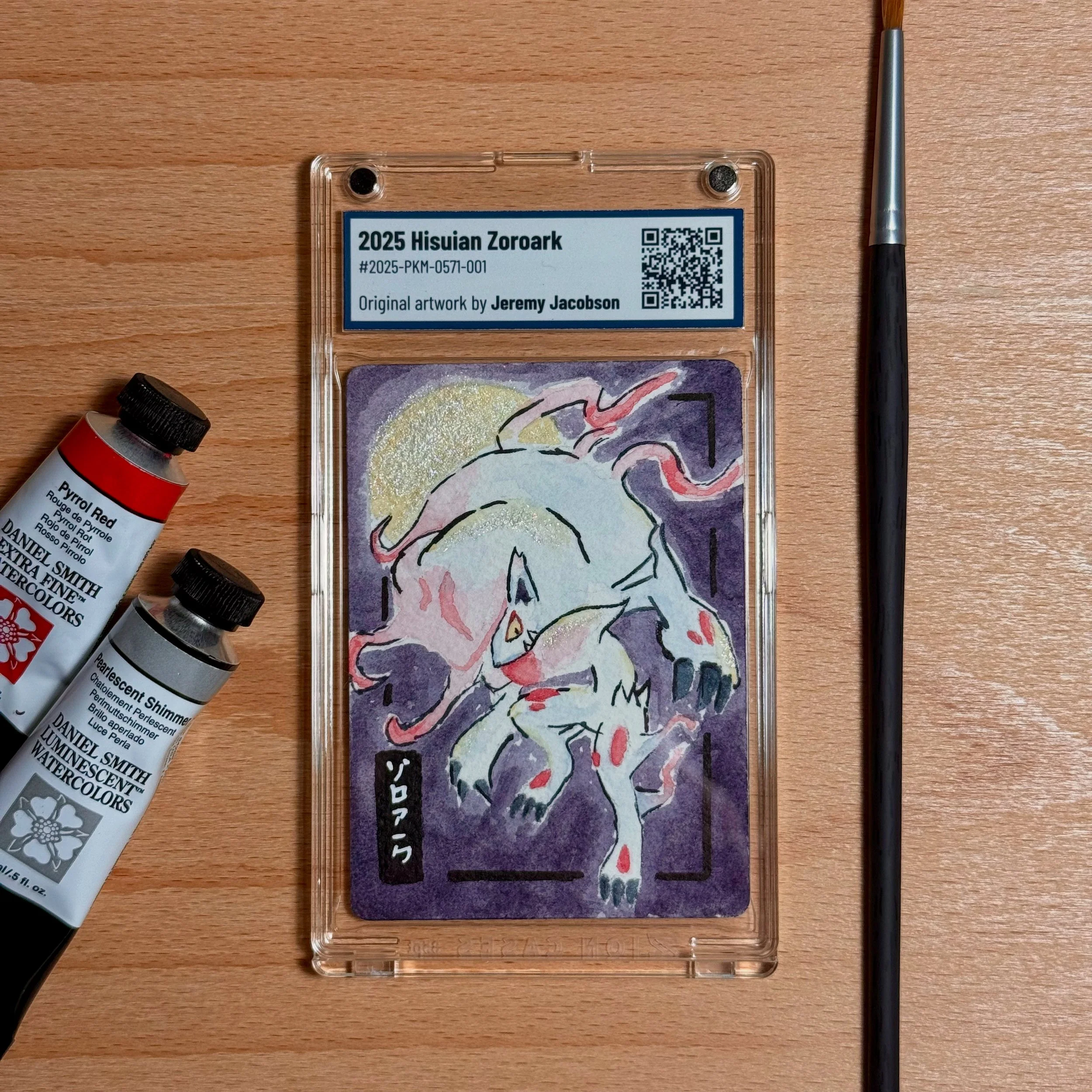 Hisuian Zoroark Pokémon trading card with original artwork in watercolor and acrylic medium.