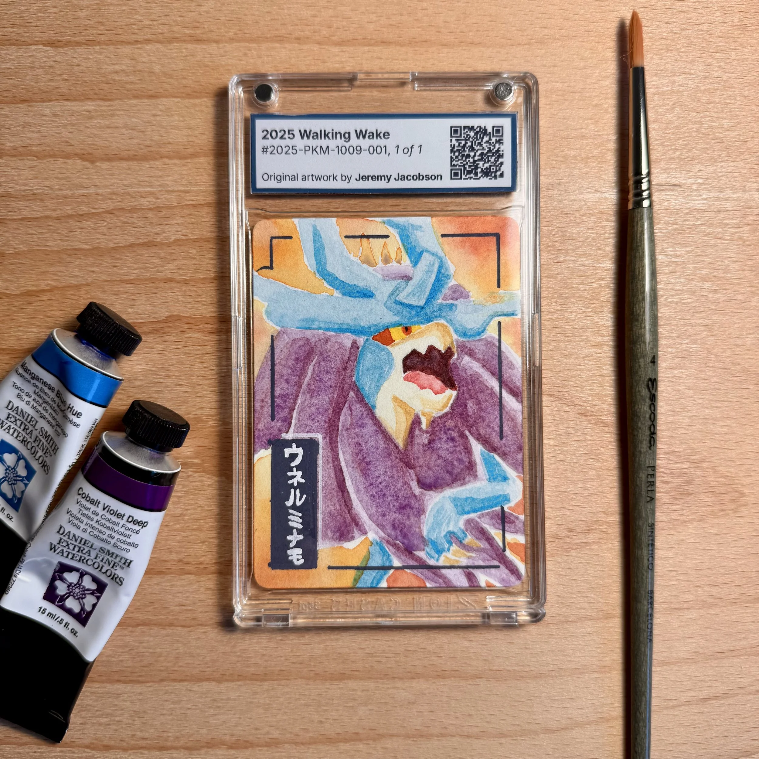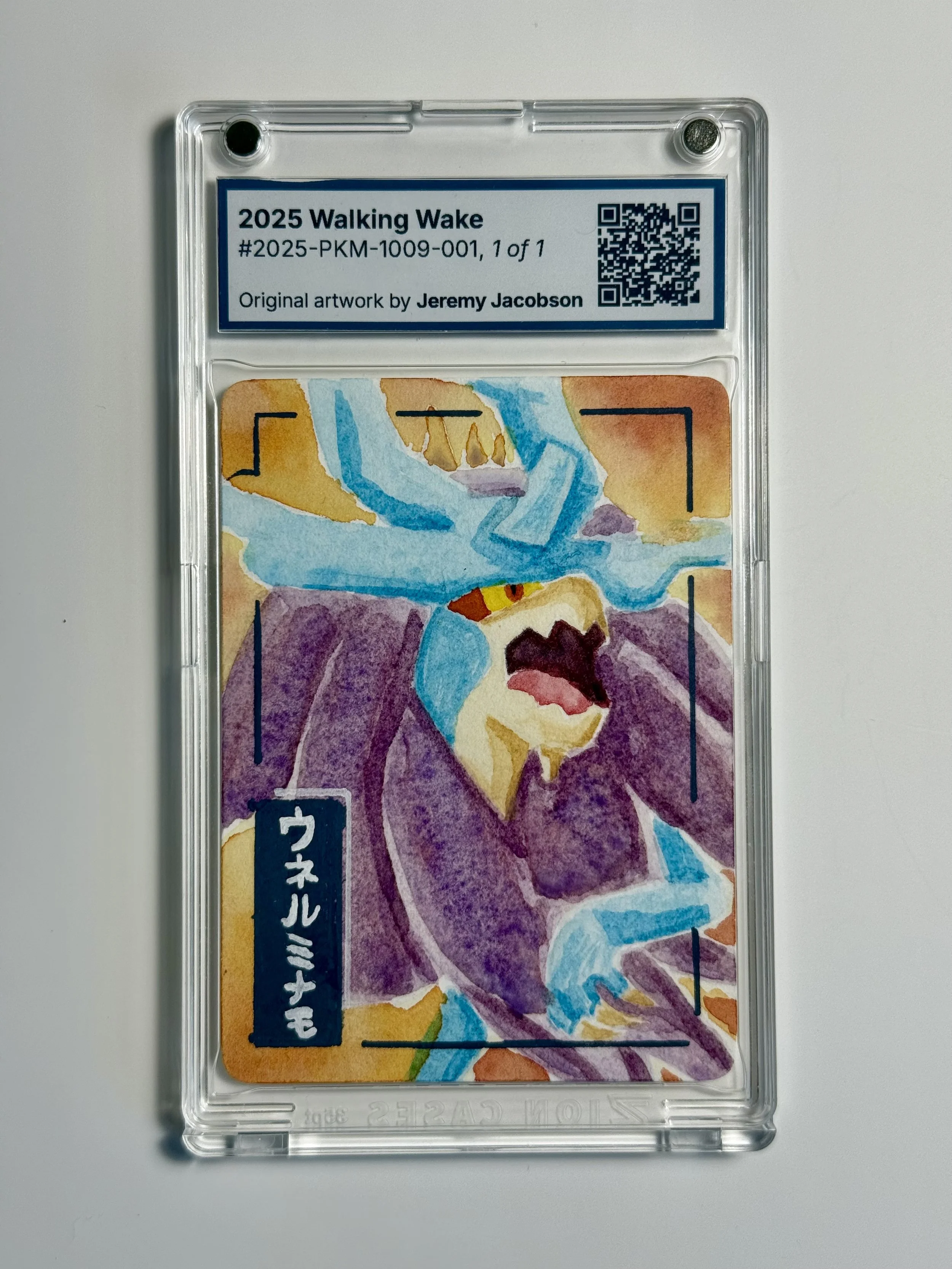 Walking Wake Pokémon trading card with original artwork in watercolor and acrylic medium